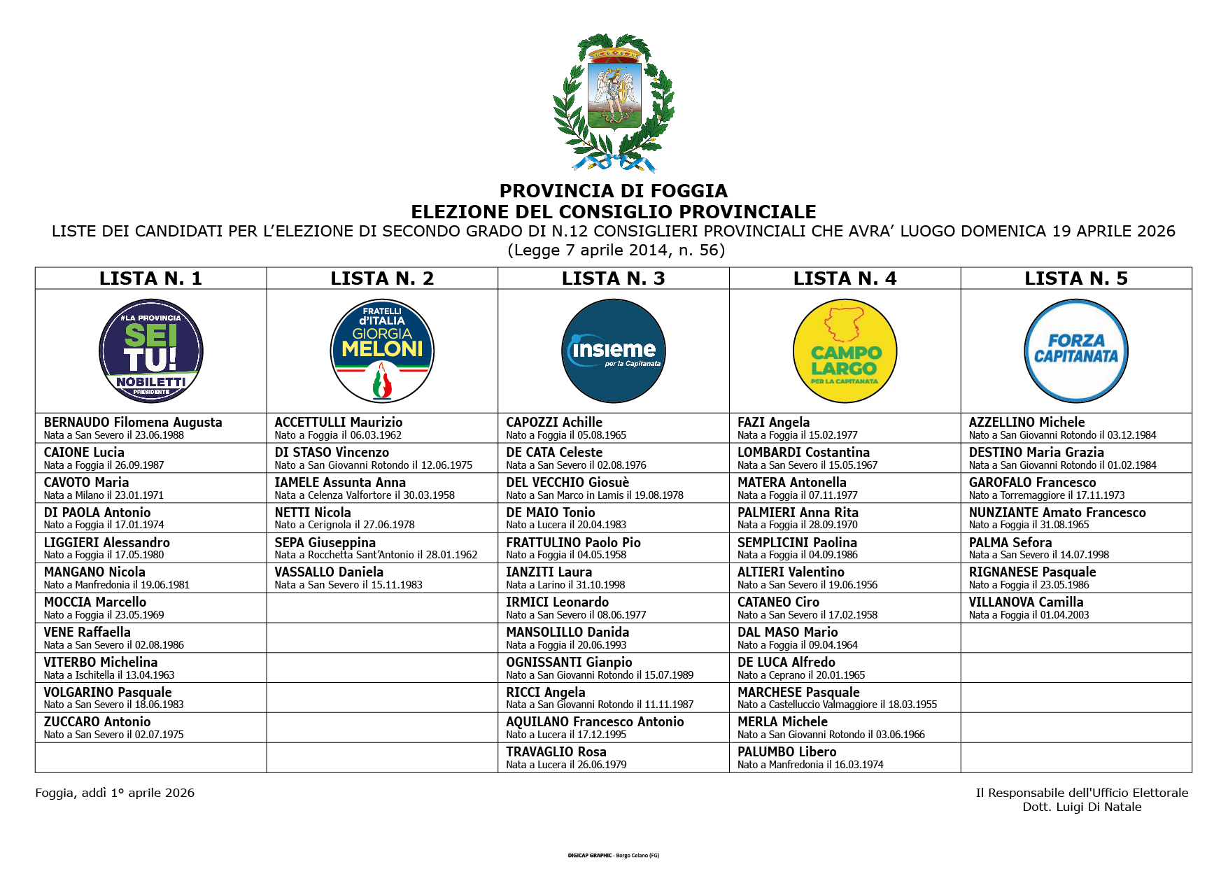 Si avvisa che per il rinnovo del Consiglio Provinciale è possibile visionare il manifesto delle liste elettorali in formato digitale.